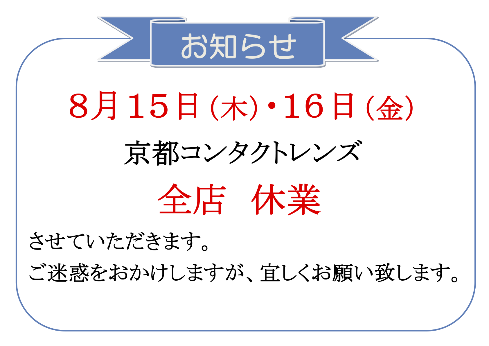2024年度 お盆休みのお知らせ